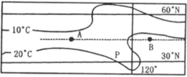D.同纬度的A、B两地,若此时该地区是冬季,A是陆地,B是海洋