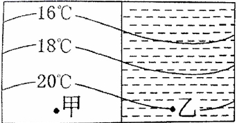 5.读下图,甲、乙两点位于同一纬度,甲为陆地,乙为海洋,则此图为()
