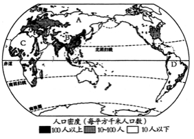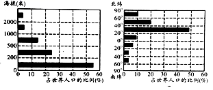 世界人口分布不均匀,但又有一定的规律性。读图,完成下面小题。