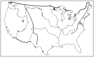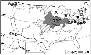 美国是世界农业强国,许多农产品产量居世界前列。读美国本土示意图,完成2~3题。