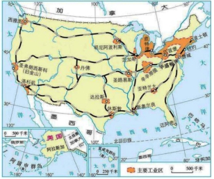 (4)美国工业发达,图中所提供的地理信息中,美国工业发展的有利条件是________。
