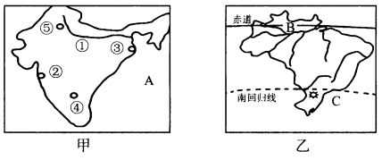 (3)乙国人口主要集中分布在________沿海地区,为缓解城市人口带来的压力,该国把首都从沿海的里约热内卢迁到内地巴西高原的________(城市)。
