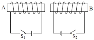4.如图所示,闭合开关S₁、S₂两个通电螺线管的相互作用情况以及A、B端的极性分别是( )