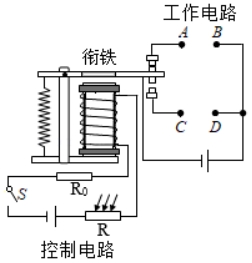 4.如图所示是某车间自动除尘装置的简化电路图。空气中尘埃量较少时,光源发出来的光被挡板挡住了。当空气中尘埃量达到一定值时,由于尘埃的反射,部分光越过挡板射到光敏电阻上,光敏电阻的阻值,电路中的电流增大,电磁铁的磁性,在衔铁的作用下,开启自动除尘模式。若图中a、b一个是除尘器,一个是指示灯,则是除尘器。