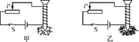 (2)连接好电路,使变阻器连入电路的阻值较大,闭合开关,观察到如图甲所示的情景;接着,移动变阻器滑片,使其连入电路的阻值变小,观察到图乙所示的情景。比较图甲和乙,可知图中的电流较小,从而发现,通过电磁铁的电流越(填“大”或“小”),磁性越强。