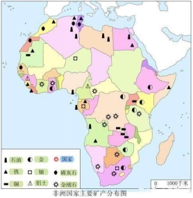 (1)在撒哈拉沙漠中埋藏了丰富的________矿产资源。在南非高原上,埋藏有丰富的________和________矿产资源。