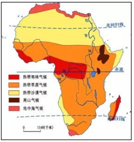 A.非洲气候类型复杂多样