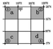 5.我国渔民在南海某海域(东经117°、北纬16°)附近进行海上捕捞作业时,受到某邻国军舰的干扰。我国渔政船从甲地出发立即前往事发海域维权。据图回答事发地点位于图中________海域,为尽快抵达事发地点,渔政船选择的前进方向大致是________( )