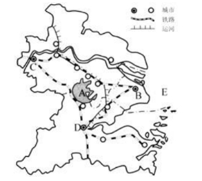 (2)据图概括长三角城市分布的特点。