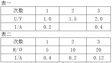 (2)探究电流与电压的关系时,所测得的部分电流、电压值见表一,在表一第2次实验中,电流表的示数如图乙所示,则通过电阻的电流为_______A,根据表一中的数据可以得到结论是___________________________。