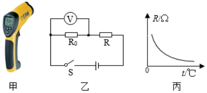 5.如图甲是非接触式红外线测温枪,图乙是它的工作原理图。R₀是定值电阻,R是红外线热敏电阻,其阻值随人体温度变化的图象如图丙。对该电路分析正确的是( )