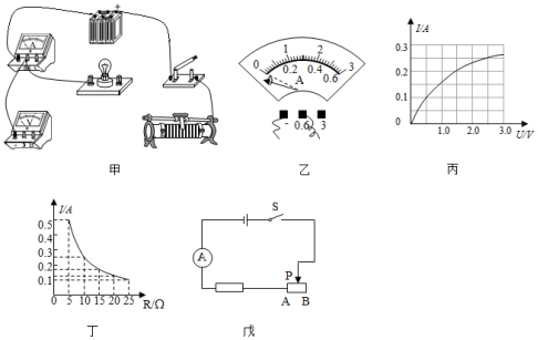 (4)小陈同学为了验证电流跟电阻的关系,他又借到了一个滑动变阻器(50Ω 0.5A)和五个定值电阻(5Ω、10Ω、15Ω、20Ω、25Ω),其余器材不变。用定值电阻更换甲图中的灯泡,小陈同学得到如图丁所示的电流随定值电阻变化的图象,则实验中他所用的滑动变阻器是_______(选填字母:A.20Ω 1A B.50Ω 0.5A),若某次实验中滑动变阻器连入的阻值为14Ω,则所用定值电阻的阻值为_______Ω。