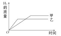 高温煅烧一定质量的石灰石5.把某稀硫酸分为等体积的两份,放入两个烧杯中,分别加入等质量的甲、乙两种金属,反应后金属都没有剩余。产生H₂的质量随时间变化的趋势如图。下列说法正确的是( )