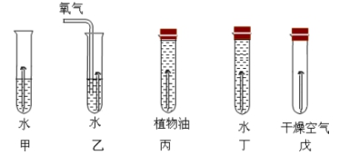 A. 甲、乙中铁钉生锈快慢的顺序为:乙>甲>戊