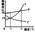 A. t₁℃时,A,B,C三种物质的饱和溶液的溶质质量分数B>A=C