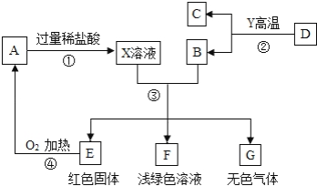 3.A、B、C、D、E、F、G为常见的物质,其中B、E、G属于单质,反应②是炼铁工业中的主要反应,如图是它们之间的相互转化关系。请回答:
